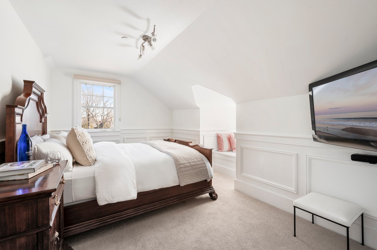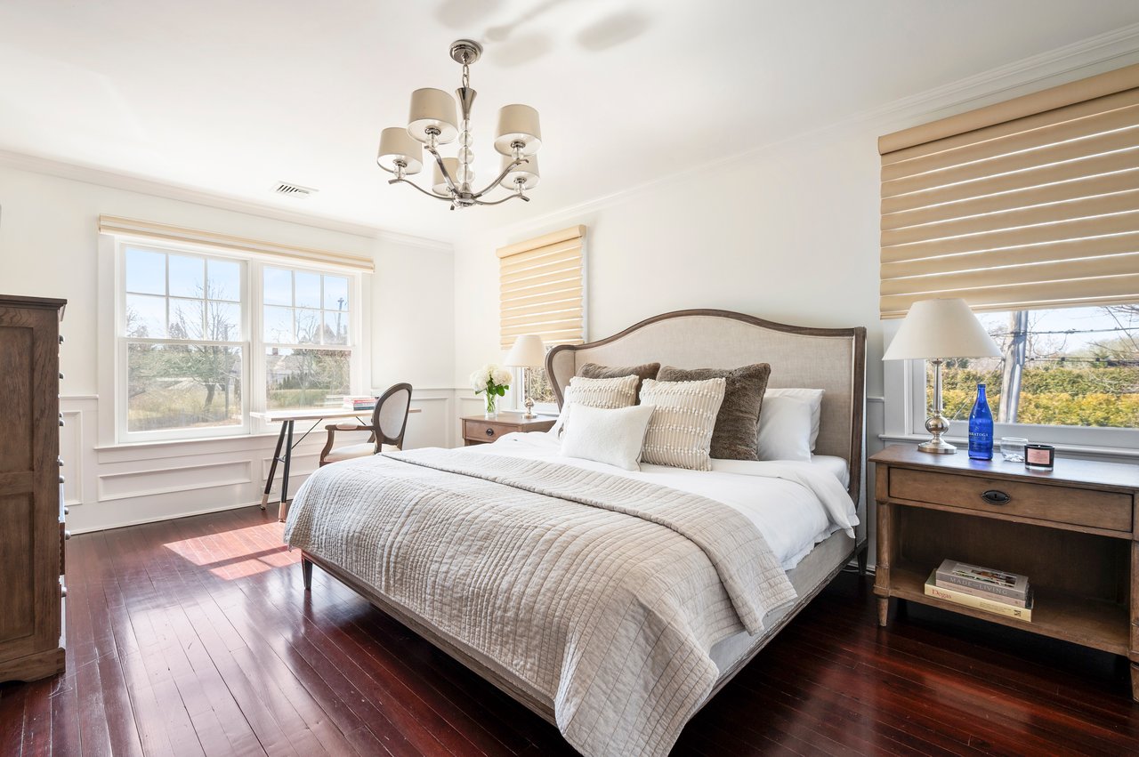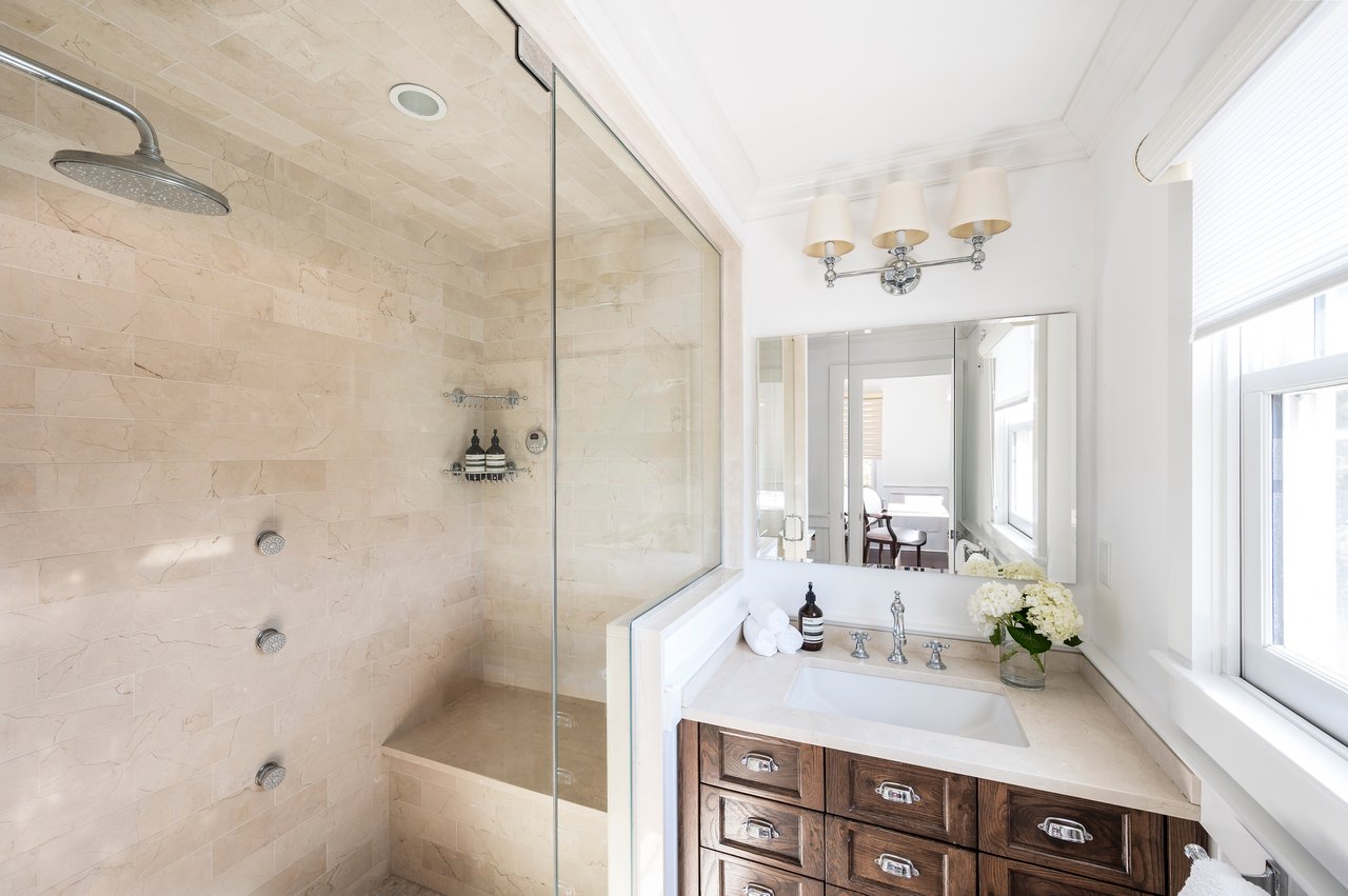 Located in the heart of Southampton Village and less than a mile from pristine ocean beaches, 179 Hampton Road is a beautifully updated cedar-shake village gem designed for effortless summer living. Blending timeless character with modern comfort, the home is ideally positioned near the village's finest shops and restaurants, as well as the train and Jitney. Set on 0.38 acres, this three-level residence offers 3,600± sq. ft. of living space, featuring 6 bedrooms, 5 full and 1 half baths, plus a finished lower level. A welcoming front porch framed by hydrangeas and a swing, sets the tone for relaxed mornings and coastal charm. Light and bright interiors, elegant french doors, and intimate spaces to unwind define the home with an open, effortless feel. The main level showcases a chef's eat-in kitchen with top-of-the-line appliances and a center island, seamlessly opening through to the outdoor deck, ideal for al fresco dining. A formal dining room with seating for eight sits just beyond. A wood-burning fireplace anchors the open living room met by a light-filled sunroom providing a serene space for work or quiet relaxation. Upstairs, the second level hosts four bedrooms and three baths, including a tranquil primary suite with a marble bath and steam shower. The third level provides two additional guest bedrooms and a full bath, offering ample space for visitors. The finished lower level includes a fully equipped gym and laundry. Outdoors, a heated gunite saltwater pool is surrounded by lush, manicured grounds. The pool house features a full bath and lounge area, complemented by an outdoor shower, perfect after a day at the beach. A grill, prep station, and oversized teak dining table complete the outdoor amenities, ideal for summer entertaining. 179 Hampton Road presents an exceptional opportunity to experience Southampton living at its finest, offering a premier village location, refined amenities, and classic Hamptons style.