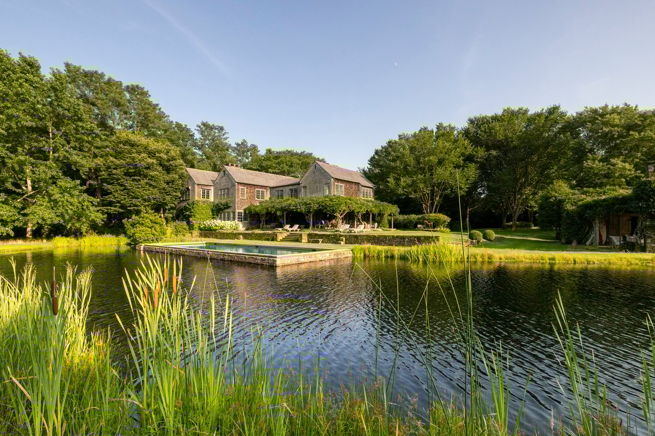 If privacy and serenity are what you crave, look no further. This 13.57 +/- acre retreat south of the highway set in Bridgehampton is truly one-of-a-kind. Consisting of two separate lots, the property exudes a park-like setting with an apple orchard, magnificent specimen trees and landscaping, and a one-acre pond with dock and boathouse. A 6600 +/- square foot main house is nestled in this oasis.
