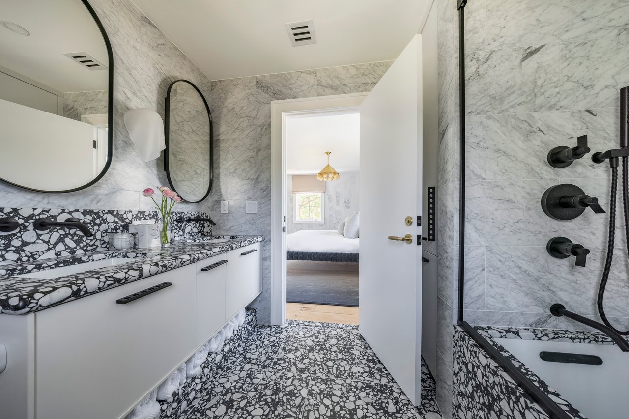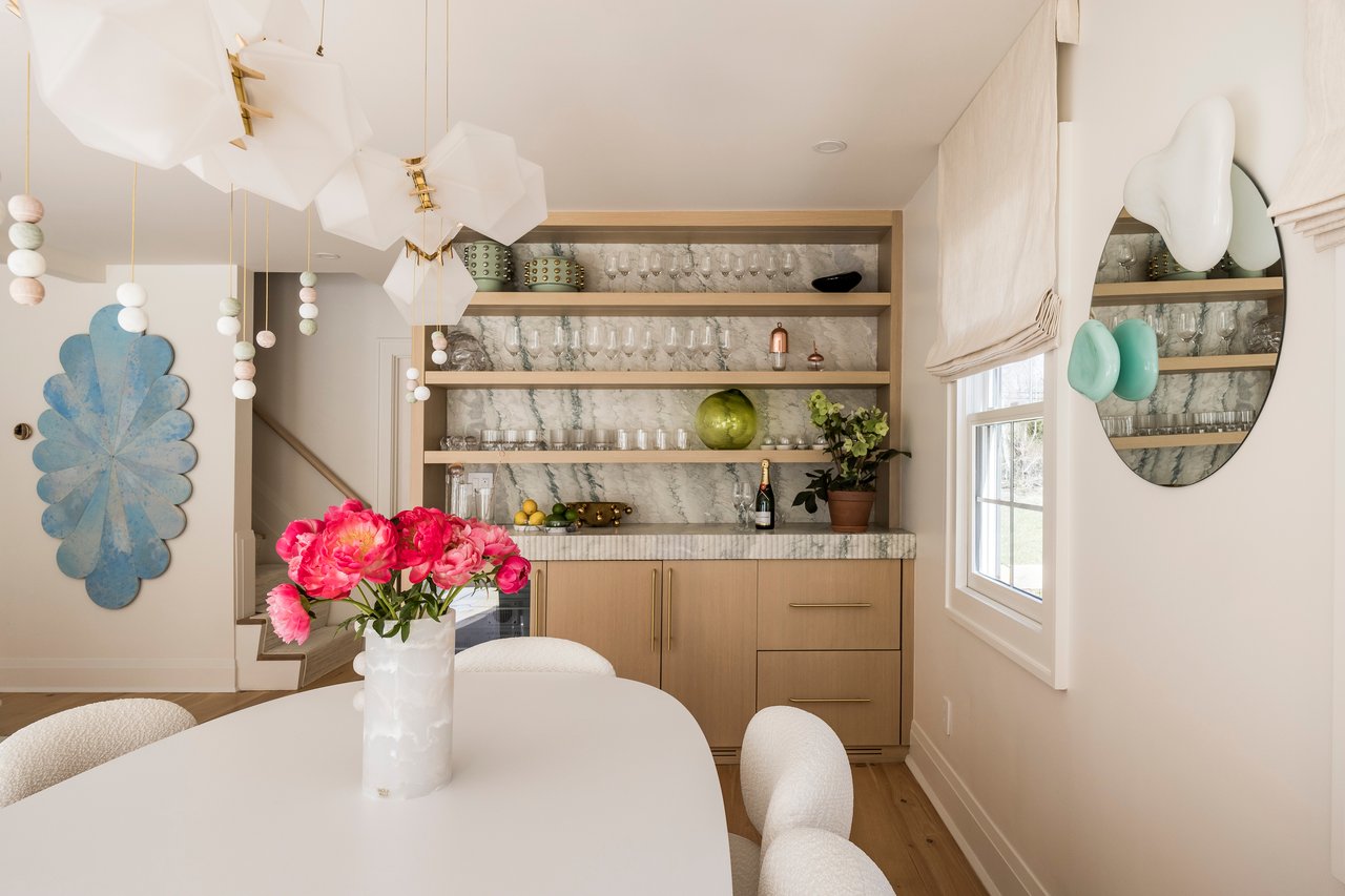 A fully curated designer retreat-ready to be enjoyed from the moment you arrive. Designer-owned and featured in Rue Magazine and on The Reveal on Prime, Noyack Cottage is a newly renovated Sag Harbor retreat by celebrated interior designer Cara Woodhouse, offered fully furnished and curated-so you're buying not just a home, but a lifestyle that has already been thoughtfully designed for you. Noyack Cottage transforms a classic Sag Harbor shingle-style home into a joyful and sophisticated Hamptons retreat, where design connects emotionally with those who experience it. The interiors embody Woodhouse's signature aesthetic: playful yet refined, blending bold geometry, sculptural curves, tactile materials, and luminous pastels to create spaces that feel both inviting and elevated. Spanning 2,218 +/- square feet, the four-bedroom, three-bath home showcases original wide-plank pine floors, custom furnishings, and carefully curated finishes throughout. Upon entering, you are welcomed into an open-plan living, dining, and entertaining space that seamlessly connects to the outdoors. The living room features custom pieces and built-ins, along with a discreet Murphy bed that allows the space to easily transition for additional guests. A wet bar with a Monogram beverage center, ice maker, and refrigerator drawers further enhances the home's entertaining appeal. The chef's kitchen is beautifully appointed with Monogram appliances, including a professional oven and range complemented by a Calacatta Corchia marble hood and Kohler pot filler, as well as a built-in side-by-side refrigerator, wall oven with microwave, dishwasher, and Kallista fixtures. Integrated LED lighting illuminates the kitchen's stone shelving and under-cabinet spaces, while thoughtfully selected Zwilling appliances and a De'Longhi Rivelia espresso machine are also included as part of the fully furnished offering. Just off the kitchen, an inviting breakfast room and gathering space creates a natural hub for morning coffee or casual entertaining. A first-floor guest bedroom with a custom built-in desk and storage provides convenience and flexibility, while a full bathroom featuring a green marble double-sink vanity and Kohler fixtures completes the first level. Upstairs, the primary suite offers a serene and private retreat perfect for unwinding, with two additional bedrooms completing the level. Every furnishing, appliance, and design detail has been thoughtfully selected and is included, allowing for a truly effortless move-in experience. Outside, the lifestyle continues with a saltwater pool, pool house, and meditation & yoga studio, creating a private sanctuary for entertaining or quiet retreat. Beautifully designed outdoor living spaces include an outdoor shower, fire pit, and a full built-in Coyote outdoor kitchen. A full-house Kohler generator and Nest thermostats provide modern comfort and reliability year-round. Located in the coveted Noyack hamlet, the home is ideally situated between bay beaches, nature preserves, marinas, and Sag Harbor Village. Spend mornings at nearby beaches, afternoons boating, and evenings enjoying the renowned dining, boutiques, and waterfront charm of historic Sag Harbor. Noyack Cottage is a rare offering where architecture, design, and lifestyle converge-an opportunity to move directly into a fully realized Hamptons vision.